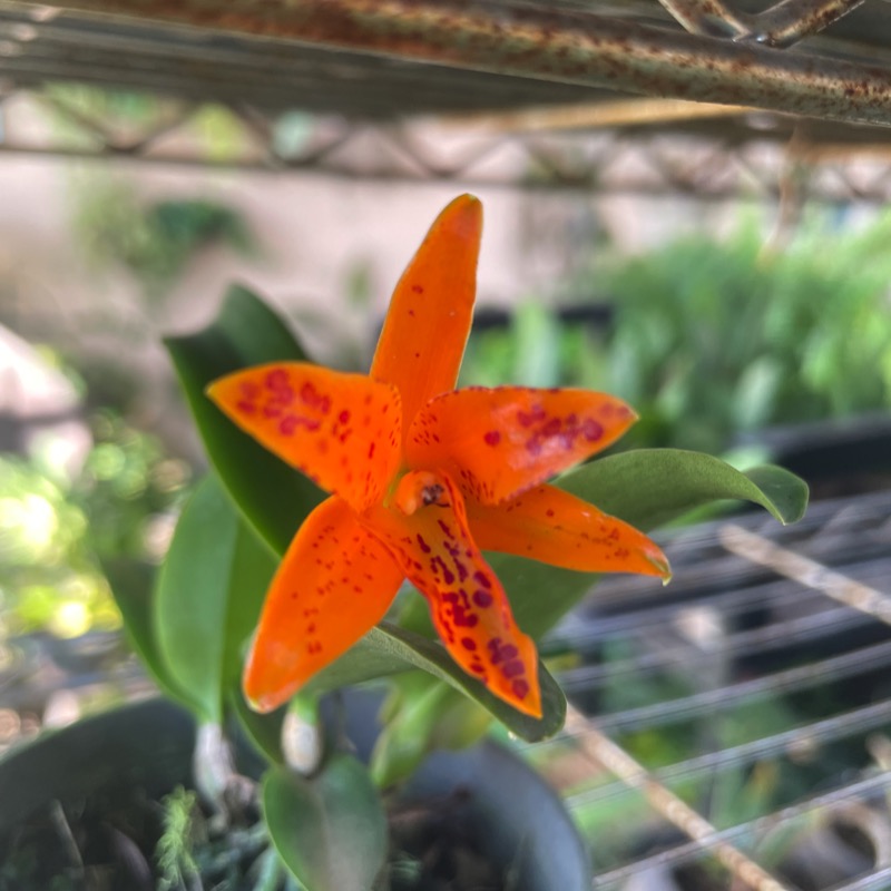 A Cattleya aurantiaca 'Mishima Spot' é uma orquídea compacta e muito valorizada por suas flores vibrantes em tons alaranjados com pintas vermelhas, que a tornam única e bastante ornamental.