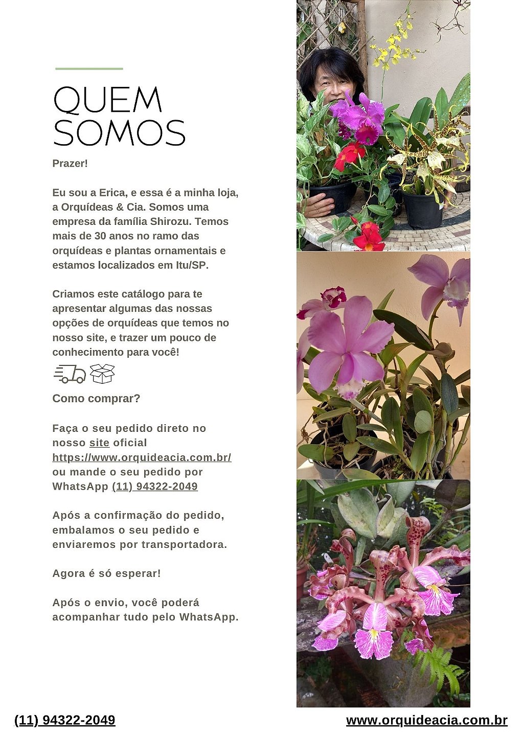 Bem-vindo à Orquídeas & Cia, sua loja online especializada em orquídeas e plantas ornamentais! Com mais de 30 anos de experiência no ramo, estamos aqui para oferecer a você uma ampla variedade de espécies de orquídeas que chega na comodidade da sua casa!