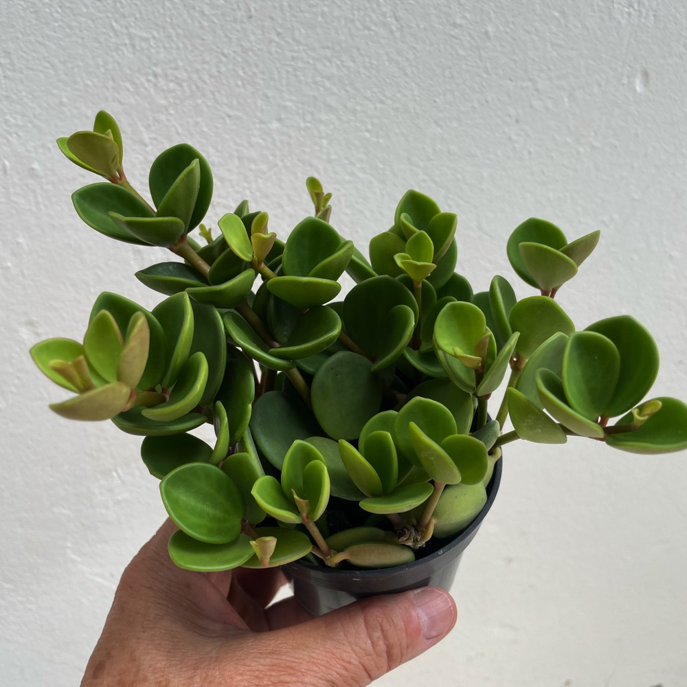 A Peperomia tetraphylla ‘Hope’ é uma folhagem ornamental muito apreciada pelo seu crescimento pendente e pelas folhas arredondadas, carnosas e brilhantes, dispostas em pequenos conjuntos ao longo dos ramos. É uma planta elegante, versátil e perfeita para vasos suspensos, prateleiras ou composições decorativas.